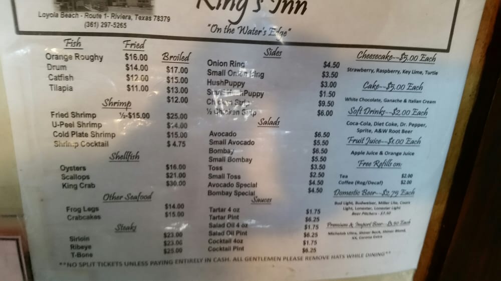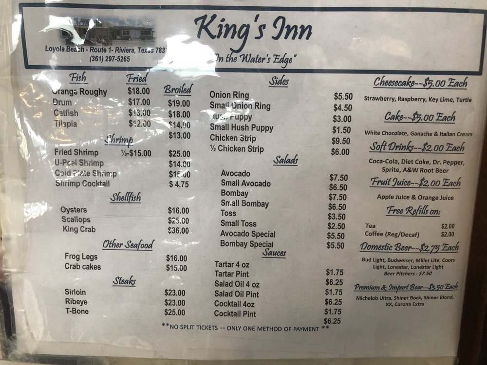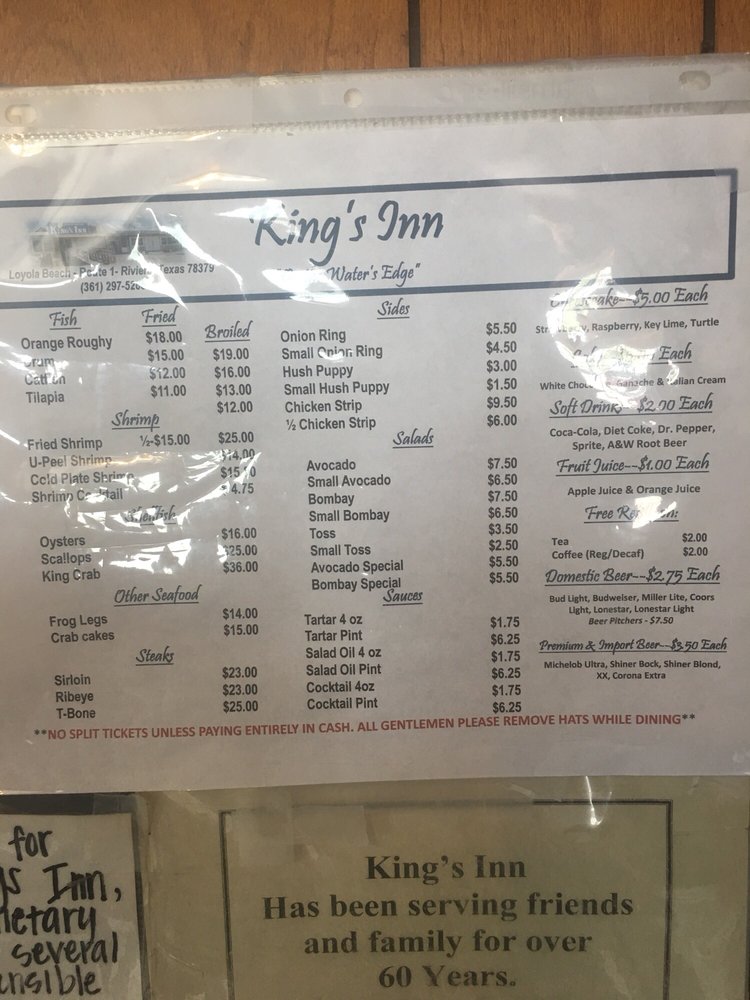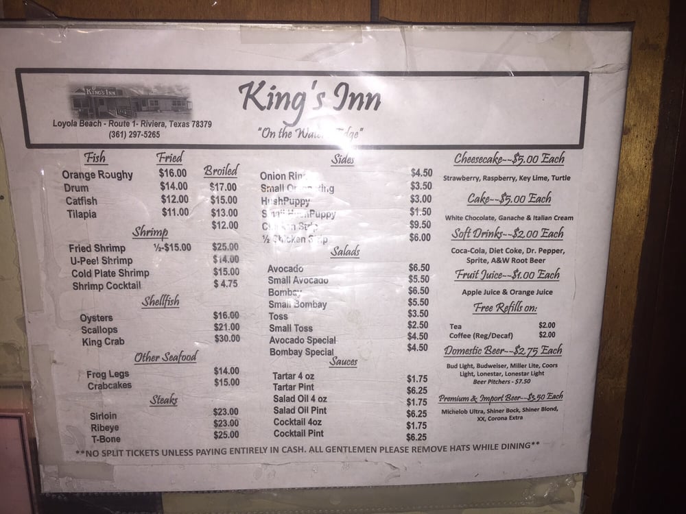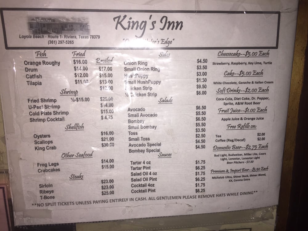 King’s Inn, a seafood restaurant located in Riviera, Texas, offers a wide range of menu options catering to all dietary preferences, including vegetarian choices. Customers rave about the exceptional food and service, with highlighted dishes such as Shrimp Drum, Oysters, Jalapeño hushpuppies, Avocado salad, and the must-try cheesecake. The restaurant boasts a casual and family-friendly atmosphere, with additional amenities such as outdoor seating, wheelchair accessibility, and convenient parking options. Guests can enjoy a delightful dining experience with quick and efficient service, paired with a variety of seafood selections at reasonable prices. With a rich history spanning over 70 years, King’s Inn continues to impress both locals and visitors alike with its delicious cuisine and warm hospitality.